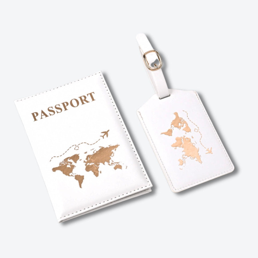 Pochette Passeport et Etiquette Bagage Design - Blanc