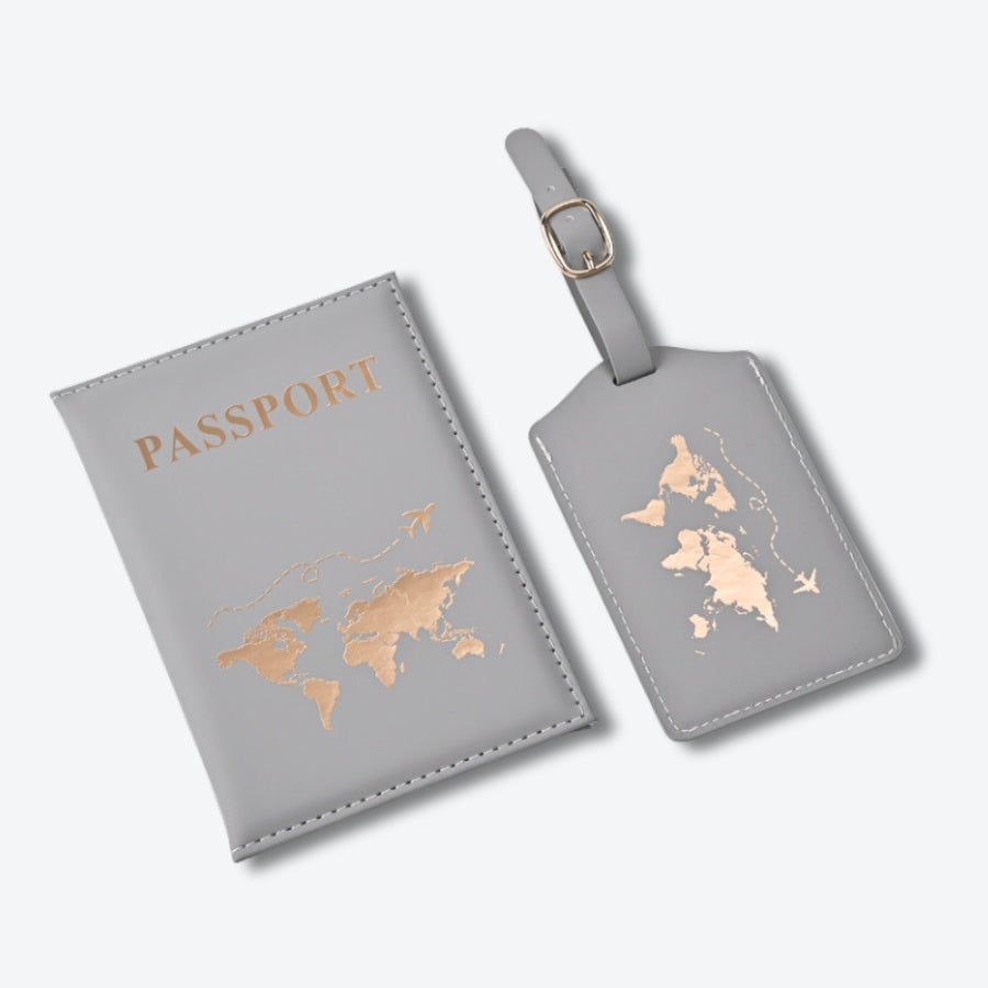 Pochette Passeport et Etiquette Bagage Design - Gris